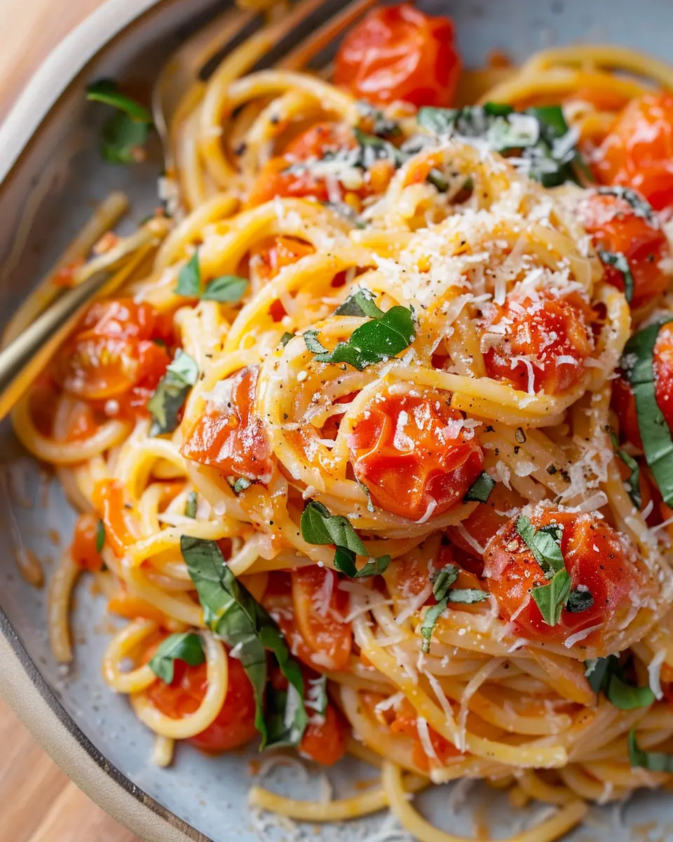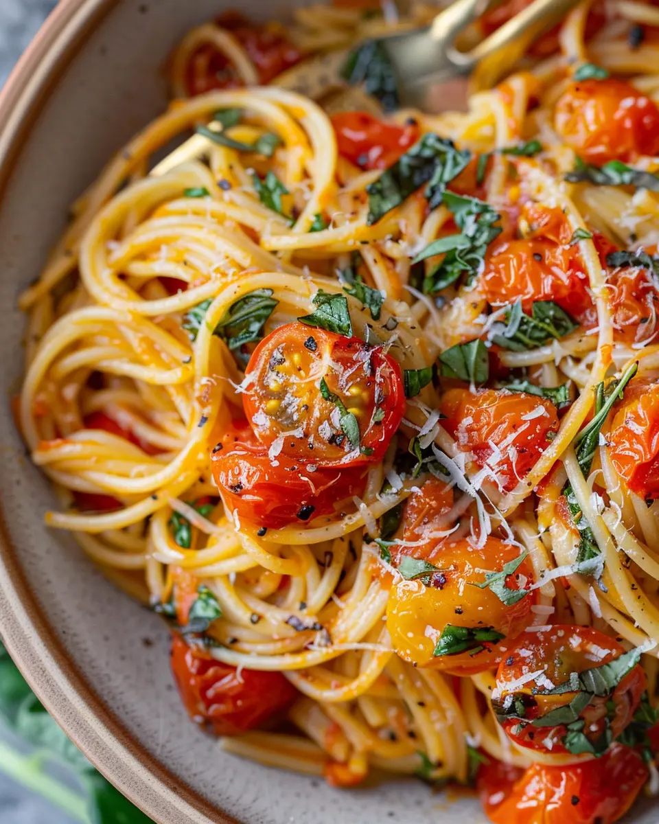 Storing leftovers of your 5-ingredient easy cherry tomato pasta is simple. Place the cooled pasta in an airtight container and refrigerate for up to three days. If you want to extend its shelf life, consider freezing it. Prepare and cool it first, then transfer to a freezer-safe bag, removing as much air as possible. When you’re ready to enjoy it again, simply thaw overnight in the fridge and reheat on the stove or in the microwave.