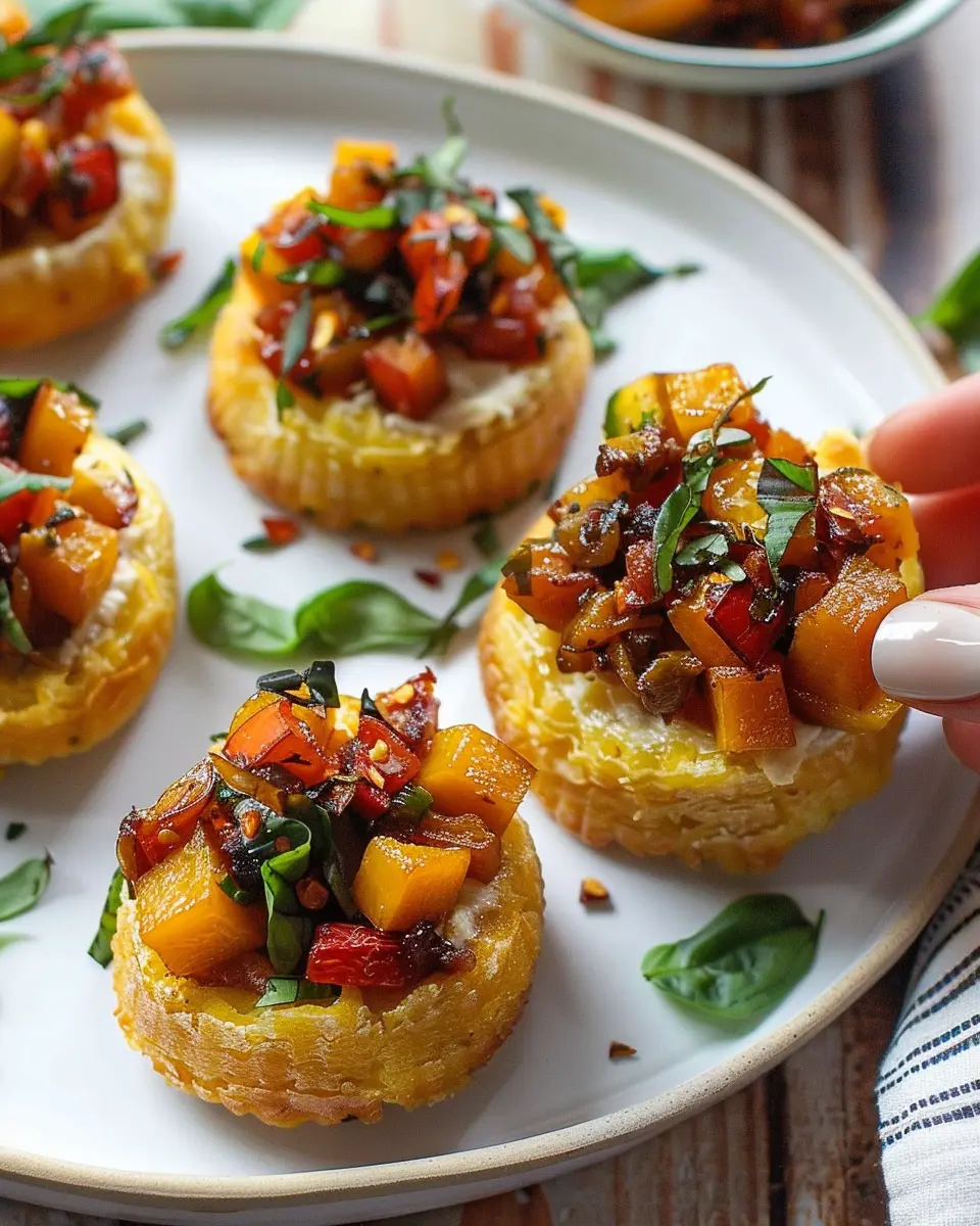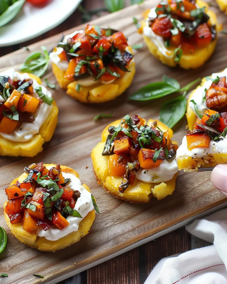 Voilà! Your Baked Polenta Bites with Butternut Squash Bruschetta are now ready to serve. These little goodies make for an elegant appetizer or a delightful party snack.