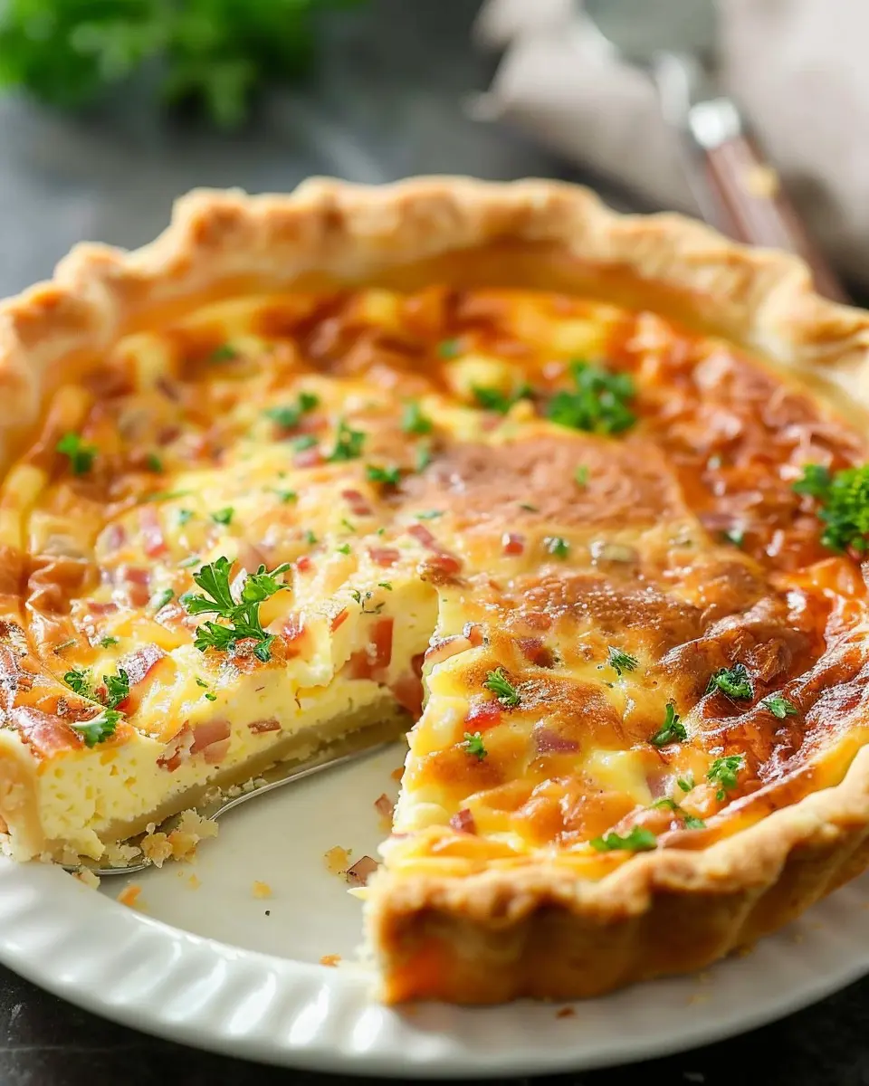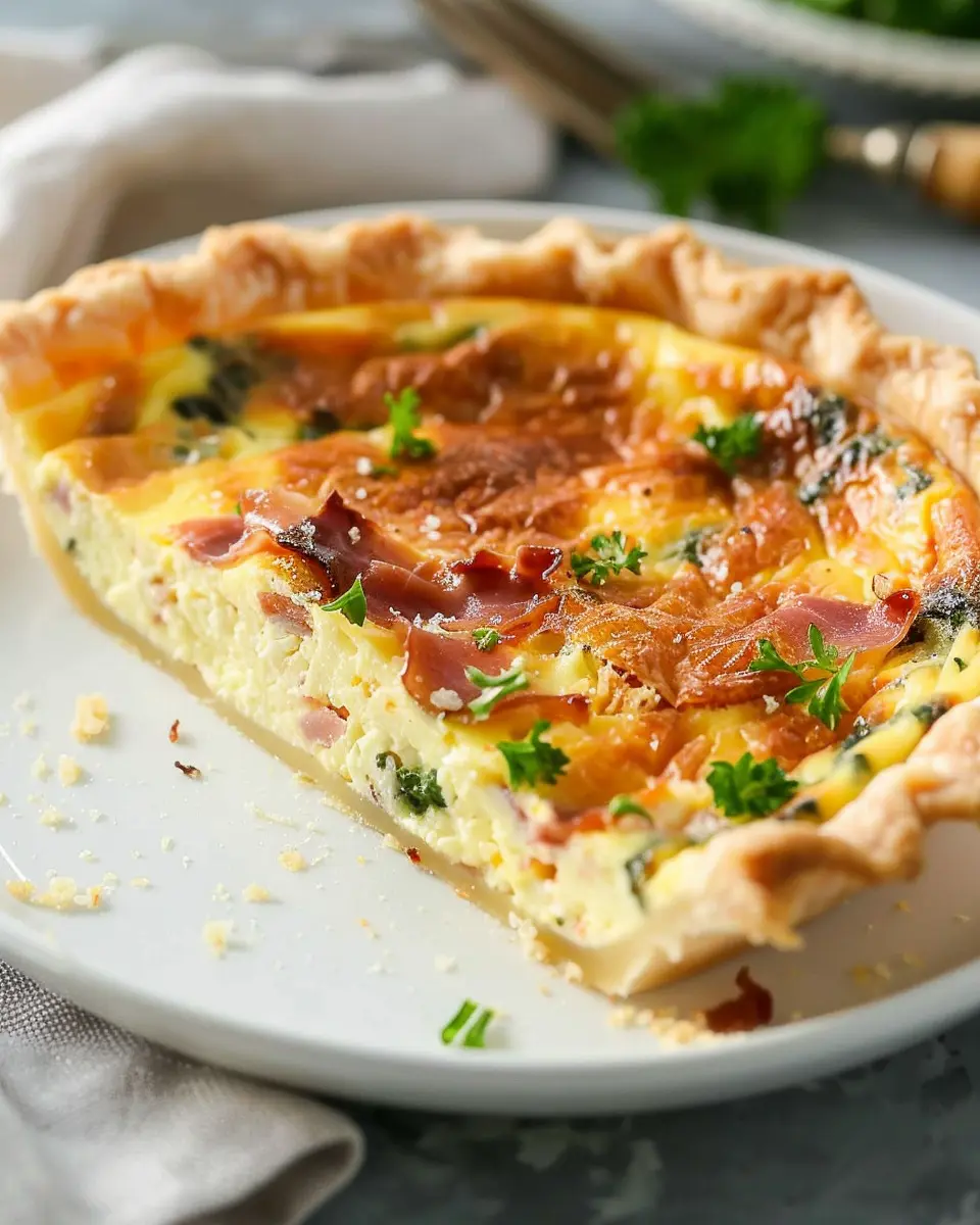 This best quiche recipe combines turkey bacon and chicken ham for a delightful twist on a classic dish.