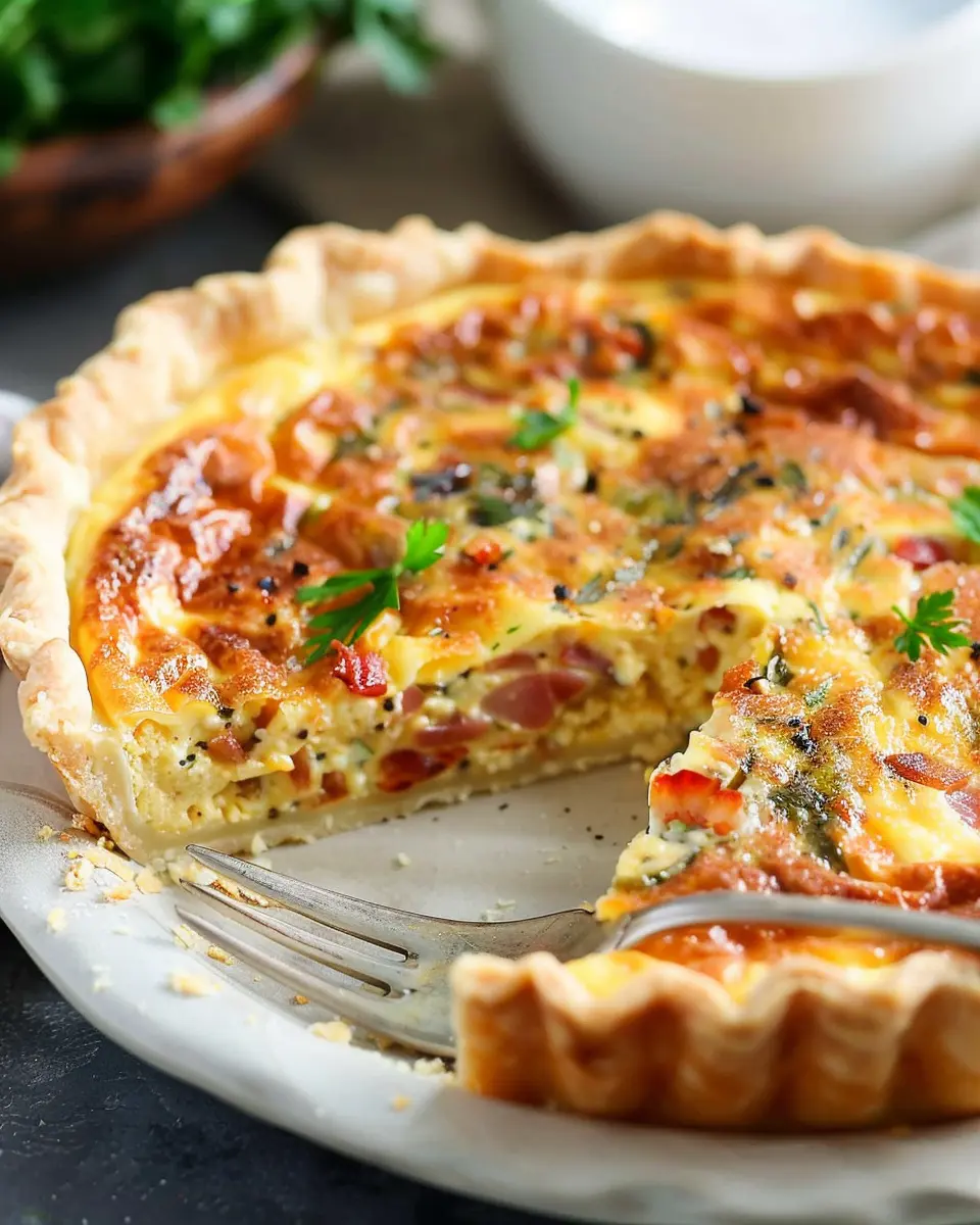 PrintBest Quiche Recipe: Delightful Turkey Bacon and Chicken Ham Twist