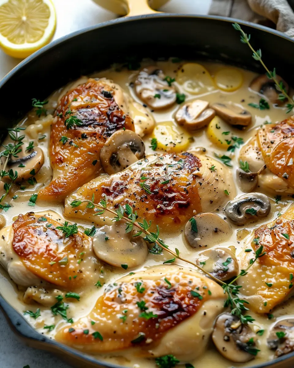 If you’re looking to elevate your chicken in white wine sauce recipe, consider adding a delightful creamy mushroom and thyme twist. This variation brings an earthy flavor profile that perfectly complements the chicken.