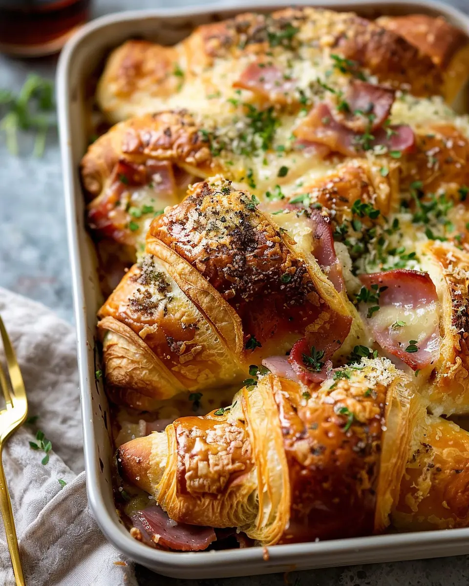 PrintHam and Cheese Croissant Bake: Easy Chicken Ham and Turkey Bacon Delight