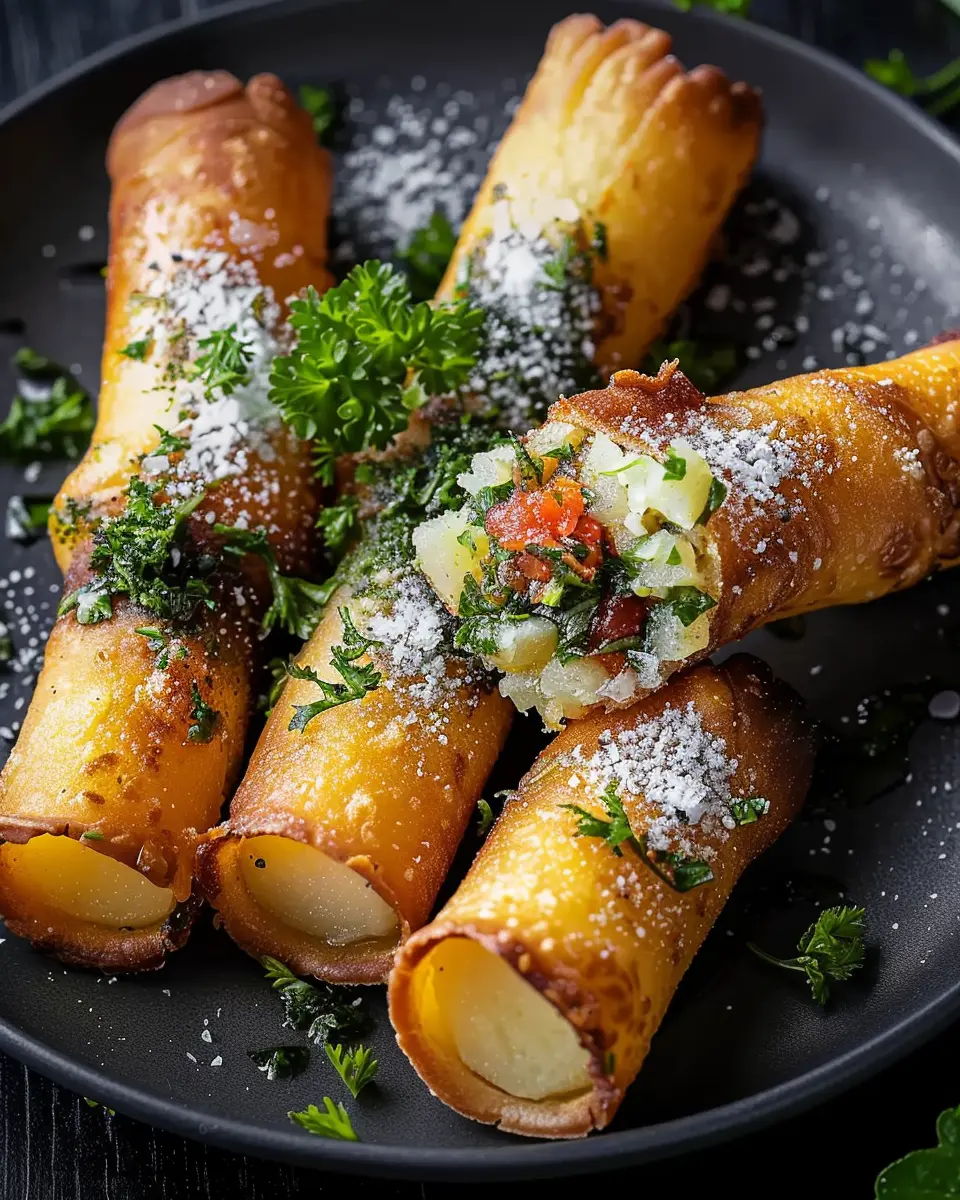 Want to impress your guests? Try serving the potato cannoli on a wooden board, surrounded by small bowls of salsa verde and a colorful array of sliced veggies. This allows everyone to customize their bites and adds a rustic charm to your table. Alternatively, you could stack the cannoli vertically on a ceramic platter for a striking visual presentation. Consider garnishing with microgreens or edible flowers to make it truly stand out.